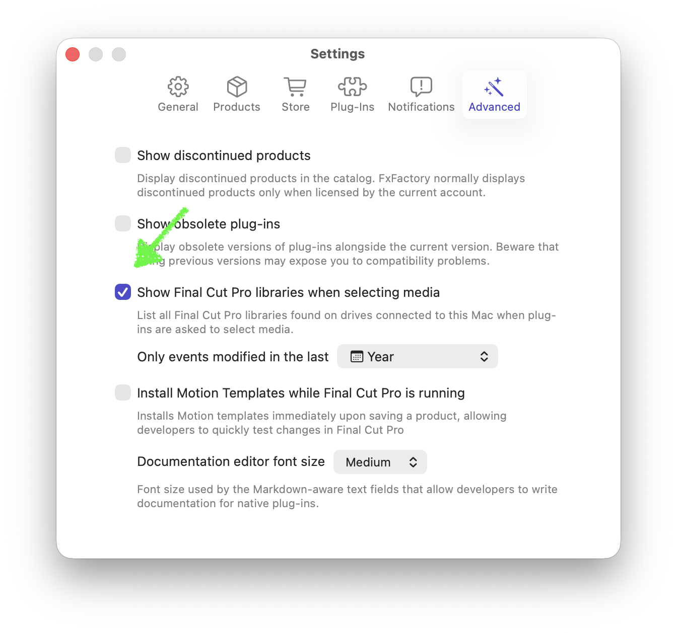 - Turn off the option titled Show Final Cut Pro libraries when selecting media
